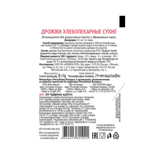 PRESTON Baker's Dry Yeast 8g