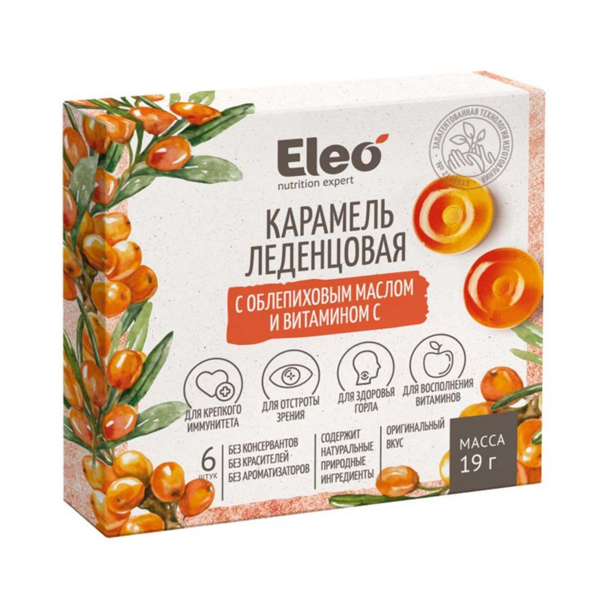 ELEO Throat Drops with Sea Buckthorn Oil & Vitamin C, 19g